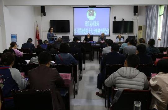 10月25日上午,开江县司法局召开职工大会专题研究学习贯彻十九大精神。开江司法局党组书记、局长谭奇才主持会议,全局干部职工50余人参加并就“落实十九大、我将怎么办”这一主题进行了热烈的讨论发言。